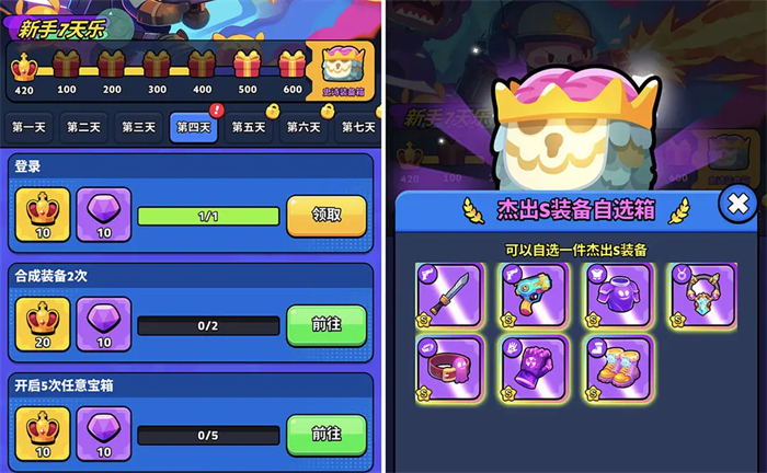 新手7天乐的任务能完成尽量全完成可以获得杰出S自选装备。