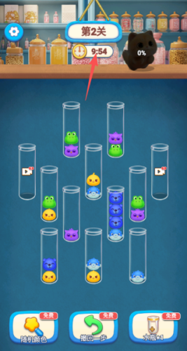 4、我们还可以通过解锁更多的试管,以及点击下方的功能按钮,去帮助闯关的。
