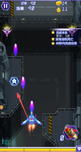 1、开启射击闯关的挑战,我们直接点击屏幕即可控制着飞机在场景中进行射击的操作的。
