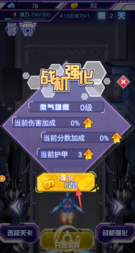 4、以及在后期也是可以去花费金币,去升级我们的战机的,更多精彩的射击战斗趣味。
