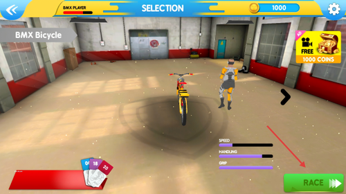 1、进入游戏选好自行车后,点击右下角RACE按钮,即可开启属于你的骑行挑战之旅。