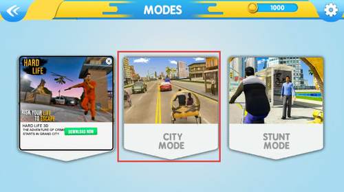 2、在模式选择界面中选择CITYMODE,进入城市街道开始自由骑行与接单冒险。