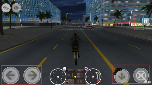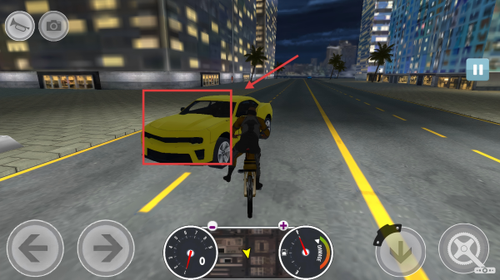 3、骑行过程中使用左侧方向键控制转向,右侧按键负责刹车和变速,跟随绿色箭头指示前进。