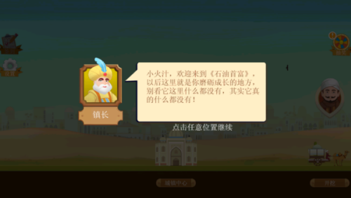 1、登录进入游戏,首先和镇长进行交谈,了解游戏的任务和开采石油的注意事项。