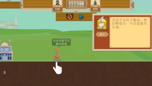 3、选好合适的开采点后,点击长按节点拖动管道,然后就可以进行开采石油了。