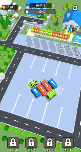2、游戏中巴士行驶速度各异,需巧妙预判,合理安排顺序,才能让它们顺利停进对应颜色车位。