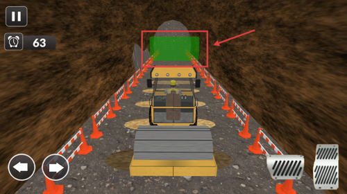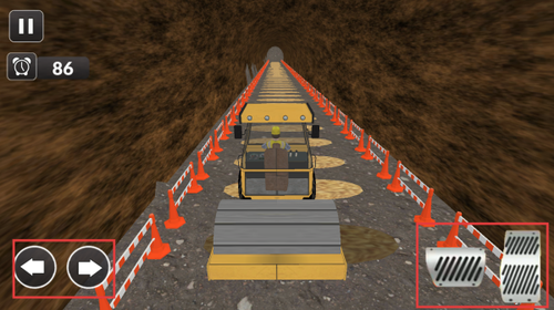 2、驾驶工程车时使用左侧方向键控制转向,右侧按键负责加速与减速,稳步穿越隧道完成施工。