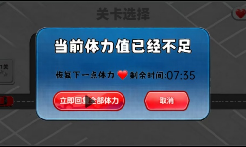4、玩家的体力值有限,每一次的尝试都需要消耗体力值,如果体力值用完就需要花费时间等待。