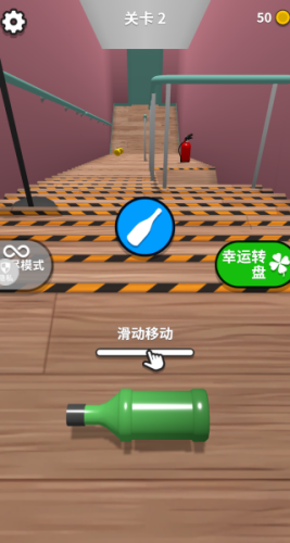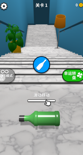 1、进入游戏后,你可以根据手指的移动去滑动瓶子,看着瓶子从楼梯上滚落。