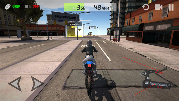 4、戴上头盔,打开发动机,加油,体验城市道路骑行,享受肾上腺素激增的快感,游戏玩法非常刺激。