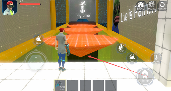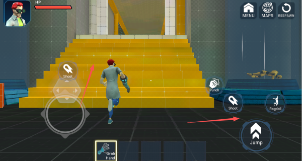3、在这种地方,我们一定得好好的操作,进行跳跃才可以通过,点击跳跃的按钮吧。
