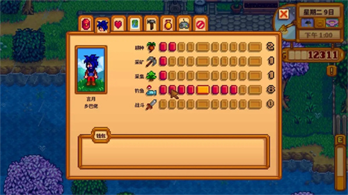 第三天:这一天一定是个雨天,我们可以不用浇水,直接去矿前的湖钓鱼,然后能在12:00左右到达3级,去鱼店,把钓到的鱼卖了,买鱼竿,然后来碗鳟鱼汤,去河流钓鲶鱼,钓到几条看脸,主要是升下钓鱼等级,小赚一下,最后能到达4级 。