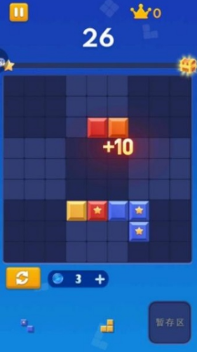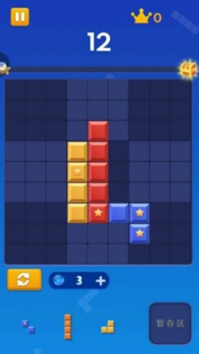 3、点击下方的方块放置到合适的位置,相同颜色的方块能进行消除,将所有的方块消除后就能通关。