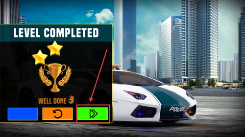 4、成功停车后,点击绿色箭头按钮,进入下一关,迎接更高难度挑战。