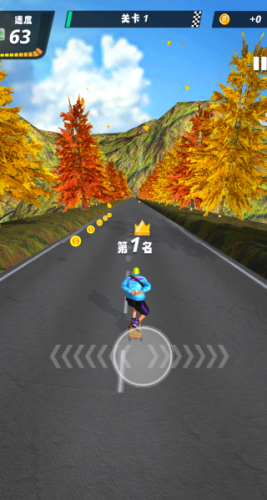2、一路上有很多的金币,你要利用虚拟摇杆控制着角色一一获取,提升排名。