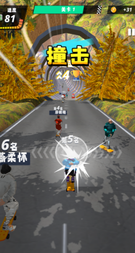 3、在滑行的过程中,你还会遇到很多的对手,你们之间可以相互撞击,看谁更厉害。