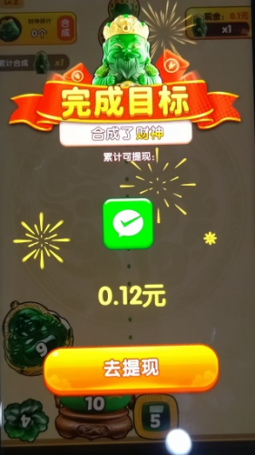 4、完成合成财神的最终任务,玩家就可以通过关卡获得奖励,然后进入下一关进行挑战。