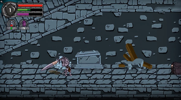 游戏角色的装备系统包括了铠甲位、主武器位、辅助武器位各一个,以及饰品位三个。而装备自然是具有多种多样的选择的,双剑、剑盾、大剑、大锤、大斧、武士刀、长矛等各种武器,有通过宝箱搜刮,也有通过商店购买,每种武器的伤害、消耗体力以及各自的连招都各有不同。
