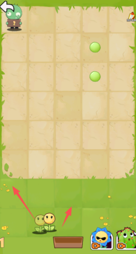 1、我们直接选择植物,然后点击拖动,放入到上方,对僵尸进行攻击。