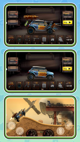 1、车辆的系统真实可升级,用有限现金在途中黑市更换引擎、加固车身、加装车顶机枪或防撞栏。