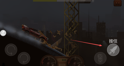 1、进入到挑战中,我们需要点击右侧的油门的按钮,让车辆不断的向前。