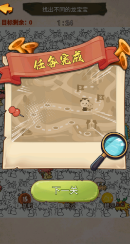 4、当你成功找到了12个不同的龙宝宝之后,就算是成功过关了,你可以解锁下一关继续挑战。