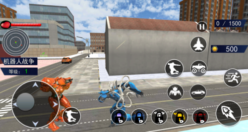 4、利用虚拟摇杆操控着你的机器人与敌人作战,还可以切换成车子形态。
