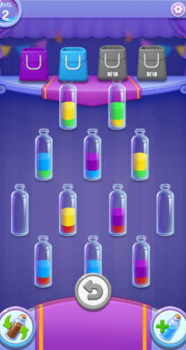 7、配备 “加瓶子”“玻璃锤” 等辅助功能,在遇到排序困境时提供解决方案,帮助你轻松的过关。