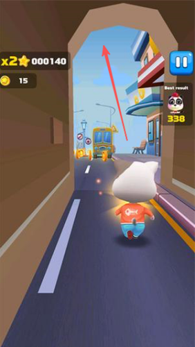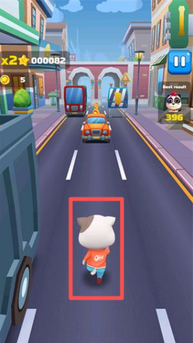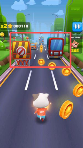 2、通过左右滑动控制加菲猫横向移动,向上滑动跳跃避开红色巴士,向下滑动翻滚穿过低矮障碍物。