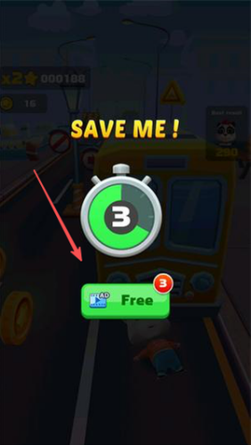 4、若撞上障碍出现SAVEME提示,可等待三秒自动复活,也可使用道具立即继续奔跑不中断流程。
