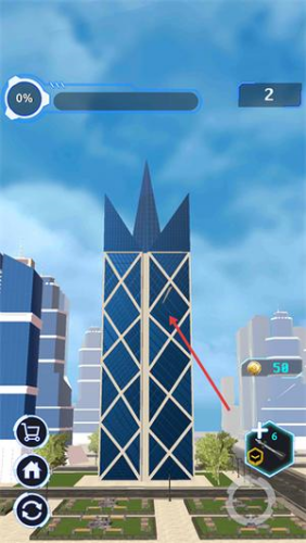 6、需尽可能根据建筑的特点,找到最佳的拆迁位置,享受一键倒塌的快感,还十分考验玩家的精准度等。