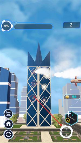 5、内置十二种建筑结构弱点识别机制,精准打击承重墙能引发多米诺式倒塌,配合慢镜头回放可细致观察碎片飞溅轨迹。