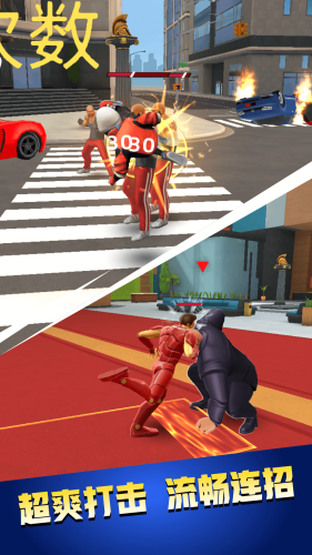 4、热血的氛围拉满,激昂的背景音乐搭配紧张刺激的战斗场景,让你全程沉浸在惩恶扬善、拯救城市的英雄使命中。