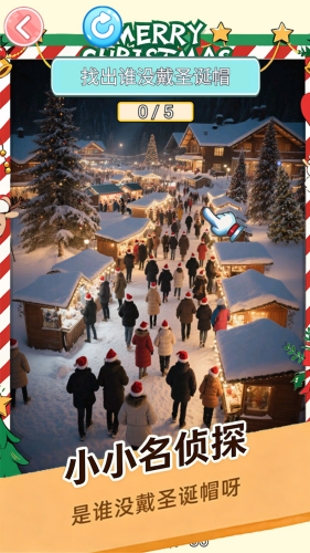 4、参与圣诞限时挑战赛,和其他玩家比拼找茬速度与准确率,冲击排行榜前列,赢取圣诞主题限定奖励,解锁隐藏的萌物关卡。