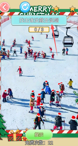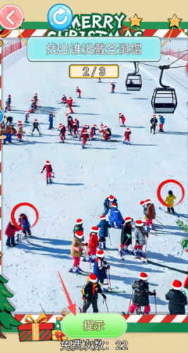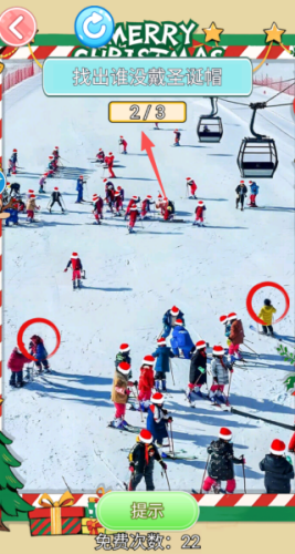 2、进入到关卡中,我们根据关卡的要求去进行操作,比如需要找出所有没戴圣诞帽的。