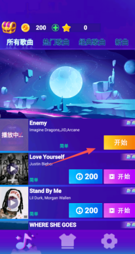 1、我们可以选择各种不同的歌曲,不同的歌曲挑战的难度也是不同的哦。
