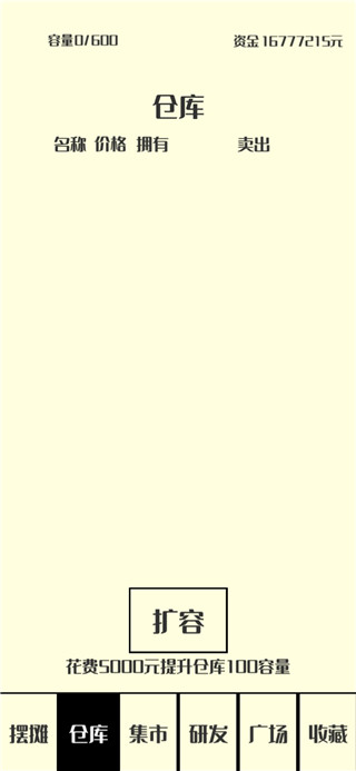 4、购入不了说仓库不足,这个时候玩家可以扩容;