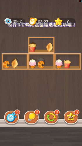 1、不同的货柜,对应不同的任务,将上面的物品全部给消除掉。