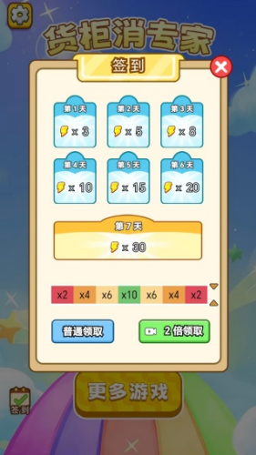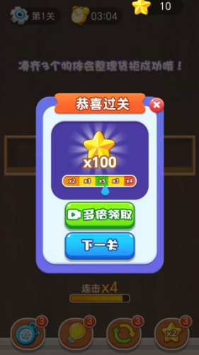 4、完成货柜消除任务,就可以获得通关奖励,观看视频还能多倍领取,然后解锁下一关。