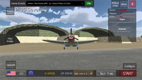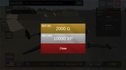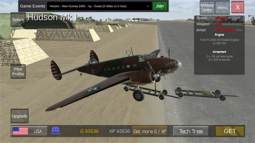 2、知名战机与解锁福利:收录P-51野马、喷火战斗机、BF-109等二战知名战斗机,破解版已解锁全部飞机,搭配无限G币与大量XP,无需额外积累资源即可体验各类机型,降低入门门槛。