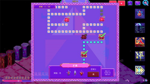 游戏将霓虹炫彩与像素复古结合,法术释放与地图元素的霓虹光效极具冲击力。