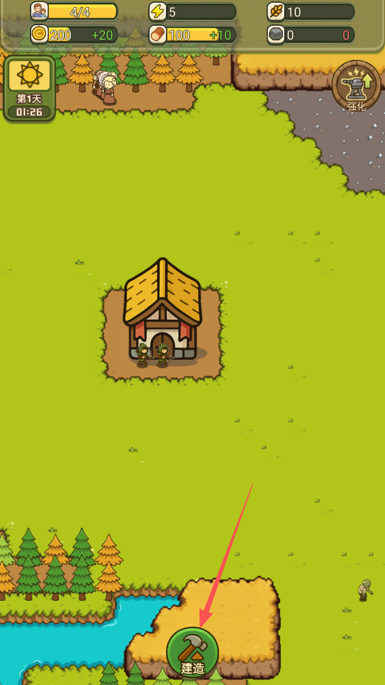 1、在白天阶段,点击建造,可以建造各种建筑,增强村庄的防御体系;