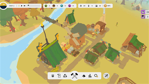 2、全自主决策机制不操控角色,通过建筑布局与工作点分配引导居民自主选择职业路径。