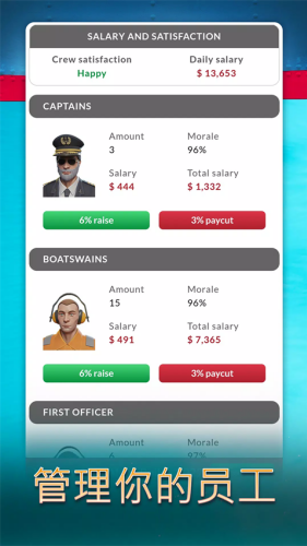 5、玩家还需要管理公司的财务状况。玩家需要赚钱来购买新船、升级现有船只和支付员工工资。