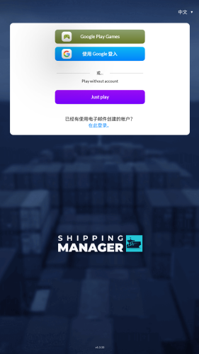 1、下载航运经理,进入游戏,可以选择just play作为游客账号游玩。