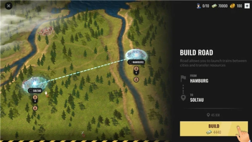 3、 可自由规划线路穿越山谷、平原与城市,策略布局直接影响经济增长与城市繁荣。