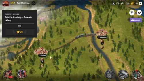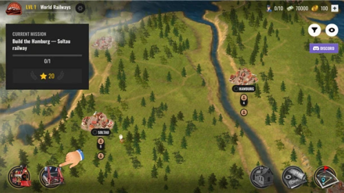 1、游戏初始阶段,你需要亲手创办一家属于自己的铁路企业,启动运营的第一步便是修建一条贯穿两个城镇的基础铁路线。点击轨道图标,即可进入建设模式。