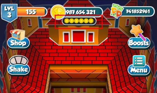 当推入的金币到一定的程度,可以积攒左上角的【Shake】数值,一共有三个档位,分别是小中大。通过点击Shake就可以摇晃机器了。