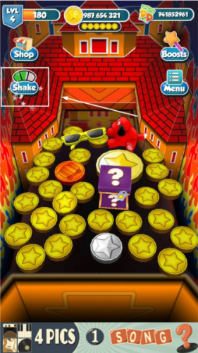 4、启动硬币墙,收集推送器上的每一枚硬币、奖品和拼图。