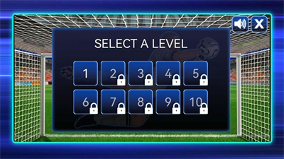 游戏包含从“新手训练营”到“世界级挑战”的多个难度等级关卡。初级关卡射门速度较慢、角度常规,帮助玩家熟悉操作;随着关卡推进,射门速度将不断提升,并出现弧线球、反弹球、变向球、连续快速射门等更具挑战性的攻击模式。